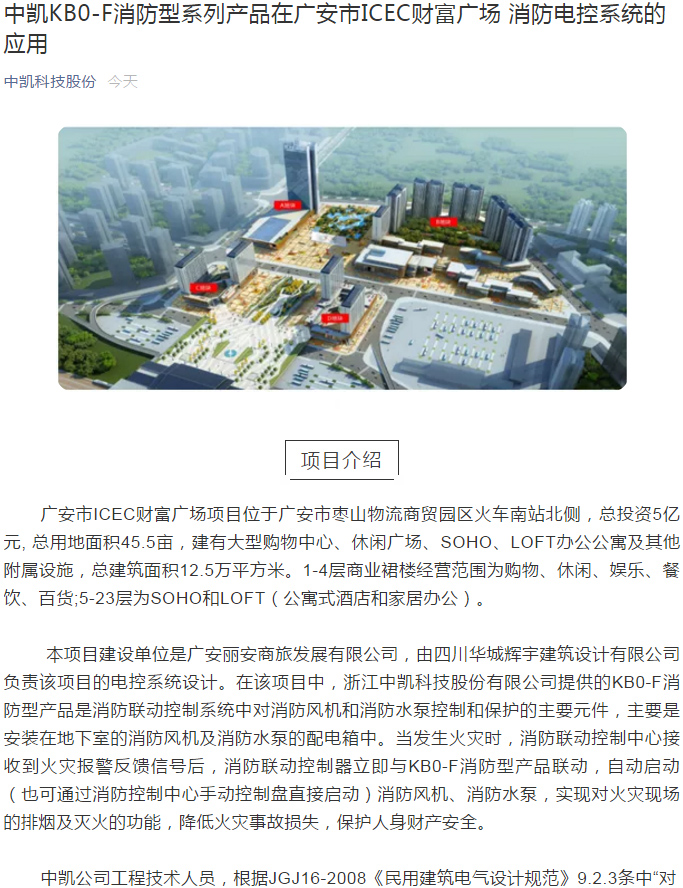 中凱KB0-F消防型系列產(chǎn)品在廣安市ICEC財富廣場 消防電控系統(tǒng)的應(yīng)用