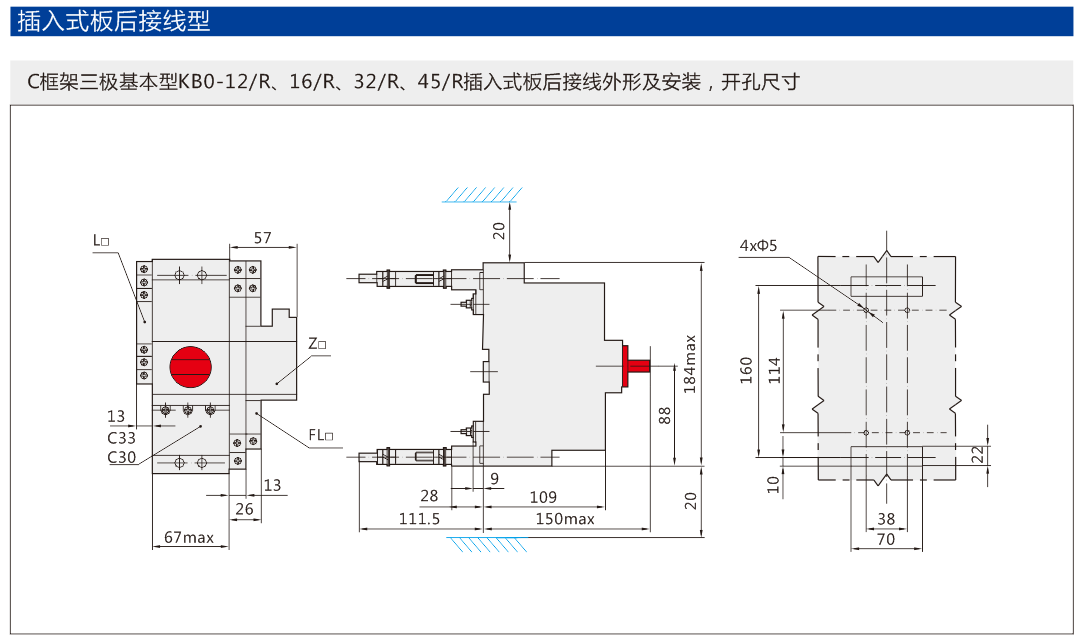 以KB0作為主開關,與插入式導柱及底座組合,構成插入式控制與保護開關電器。