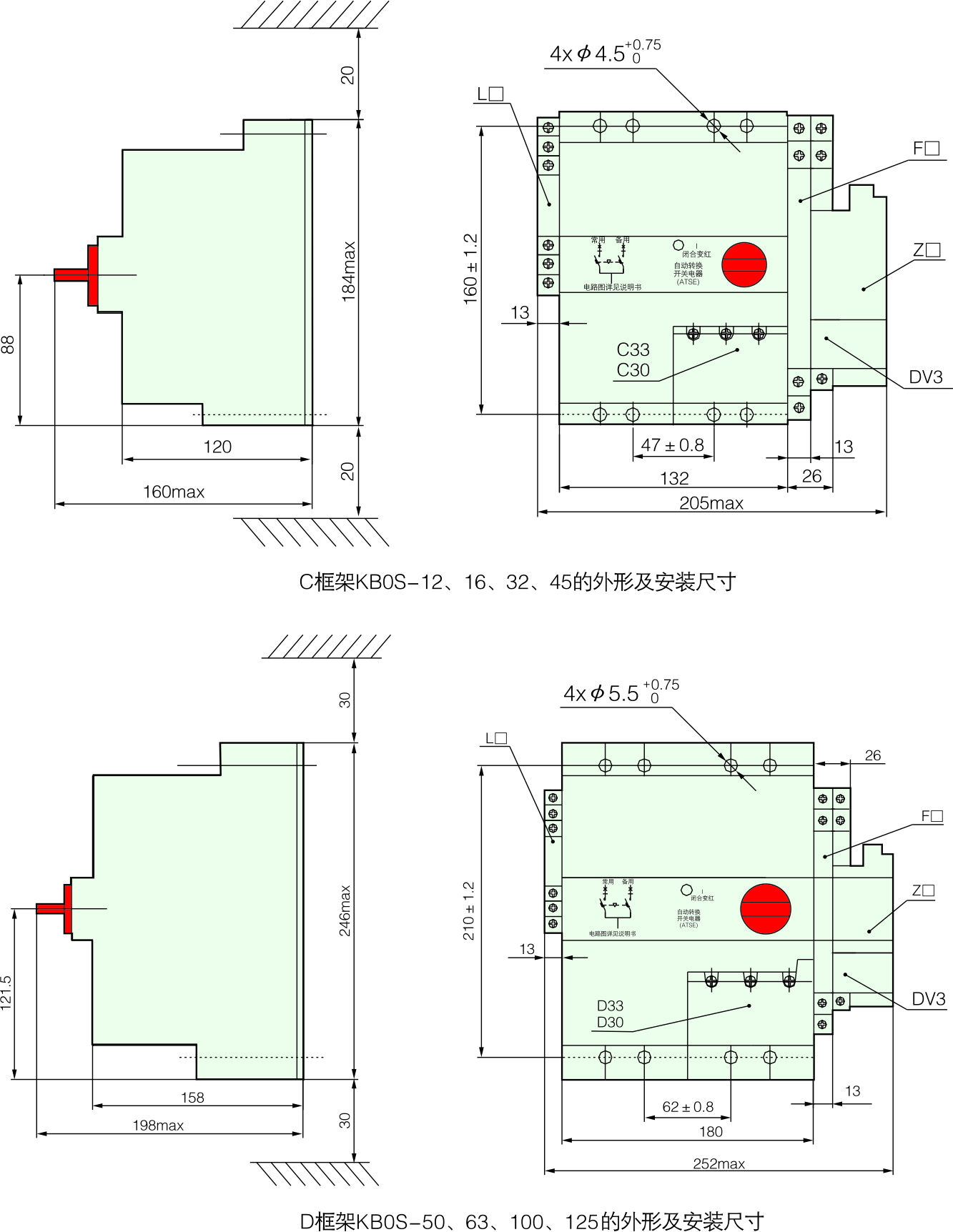 雙電源自動轉換開關電器KB0S3是以KB0基本型產品作為主開關,與雙電源控制器、機械聯鎖、電氣聯鎖等附件組成,構成了CB級和PC級兩種ATSE。