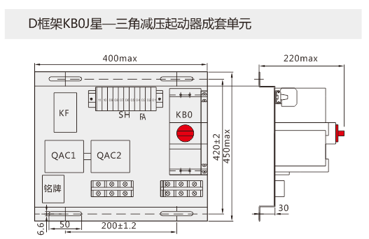 以KB0作為主開關(guān),與接觸器、時(shí)間繼電器、電氣聯(lián)鎖等附件組合,構(gòu)成Y-△減壓起動(dòng)器成套單元KB0J(以KB0-F消防型產(chǎn)品作為主開關(guān),可構(gòu)成消防型Y-△減壓起動(dòng)器成套單元KB0J-F)可實(shí)現(xiàn)110kW及以下的電動(dòng)機(jī)的Y-△減壓起動(dòng)控制與保護(hù)。