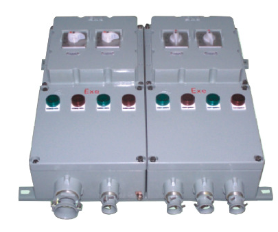 BQD55一KB0防爆控制與保護開關(guān)箱(以下簡稱開關(guān)箱)適用于ⅡB級T6組及以下級別、組別的爆炸性氣體混合物(1區(qū)和2區(qū))場所。主要用于交流50Hz(60Hz),額定電壓至400V,開關(guān)箱額定電流至180A,各分路的電流至45A的電路中,對配電電路負載的控制與保護及對電動機不頻繁或頻繁起動、停止的控制與保護。