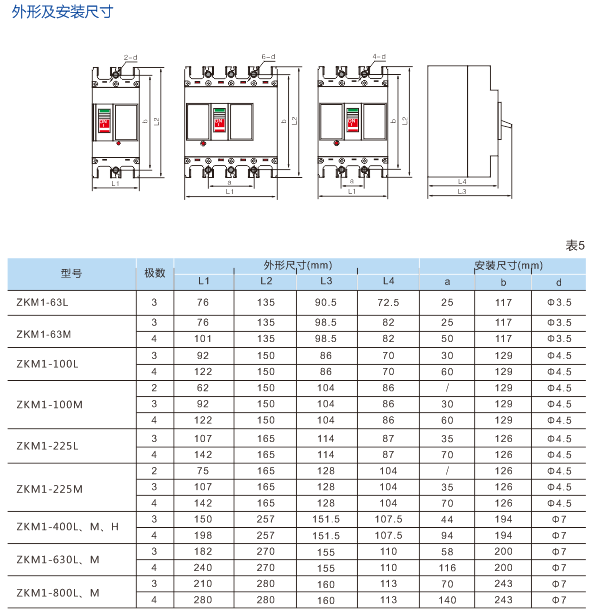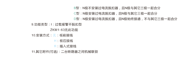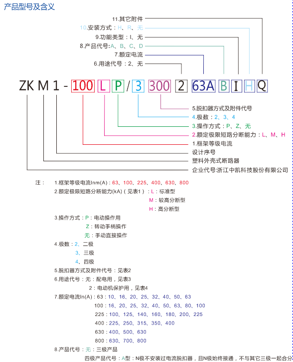 ZKM1系列塑料外殼式斷路器 (以下簡稱斷路器),其額定絕緣電壓為800V,適用于交流50Hz,額定工作電壓690V及以下(ZKM1-63400V),額定工作電流至800A的電路中作不頻繁轉換及電動機不頻繁起動(ZKM1-800 無電動機保護型)之用。斷路器具有過載、短路和欠電壓保護功能,能保護線路和電源設備不受損壞。
